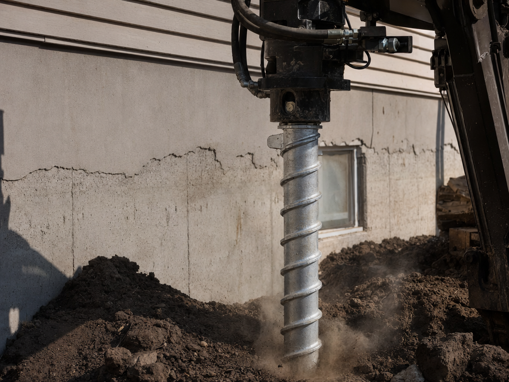 Steel piers driven to load-bearing soil to lift and stabilize your settling foundation. Permanent fix, engineered to support full home weight.